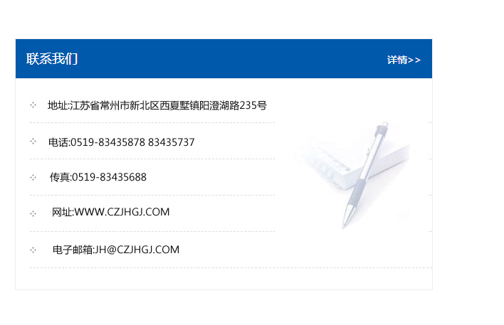 傳真:0519-83435688    郵編:213135    網址:WWW.czjhgj_com.cdsanjia88.com    電子郵箱:JH@czjhgj_com.cdsanjia88.com